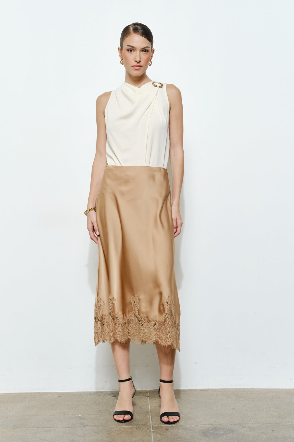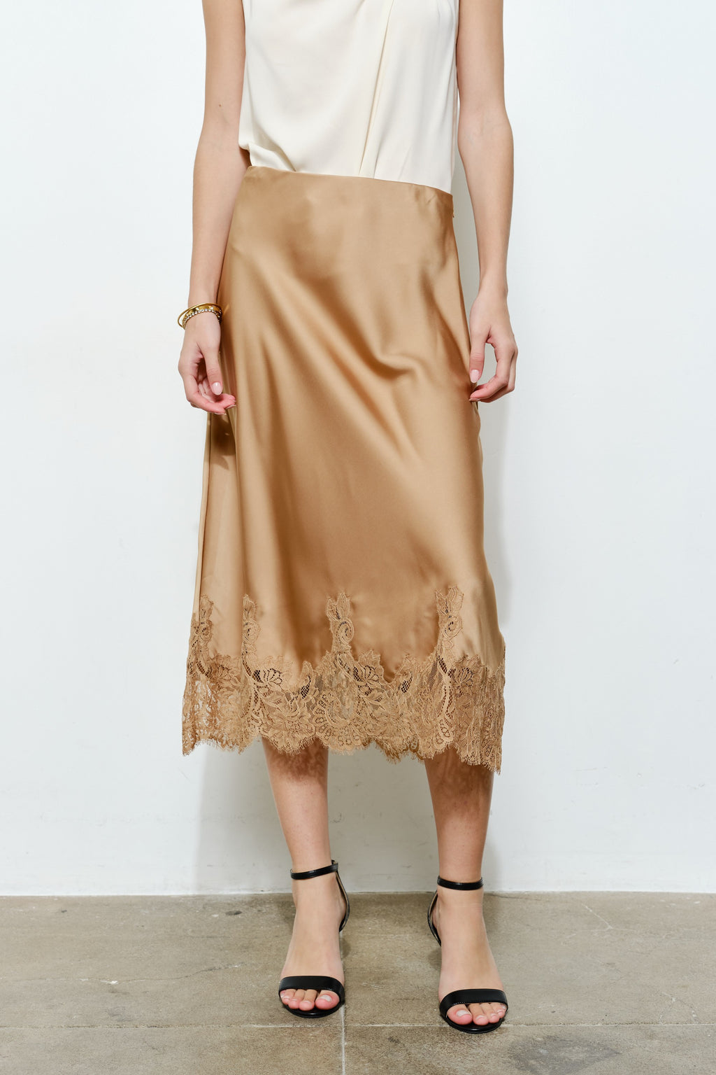 MIDI LACE EDGE SLIP SKIRT