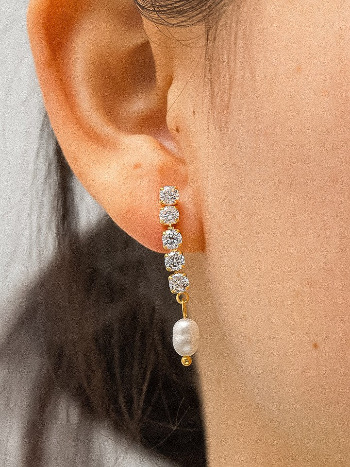 GOLD PEARL CZ DROP EARRINGS