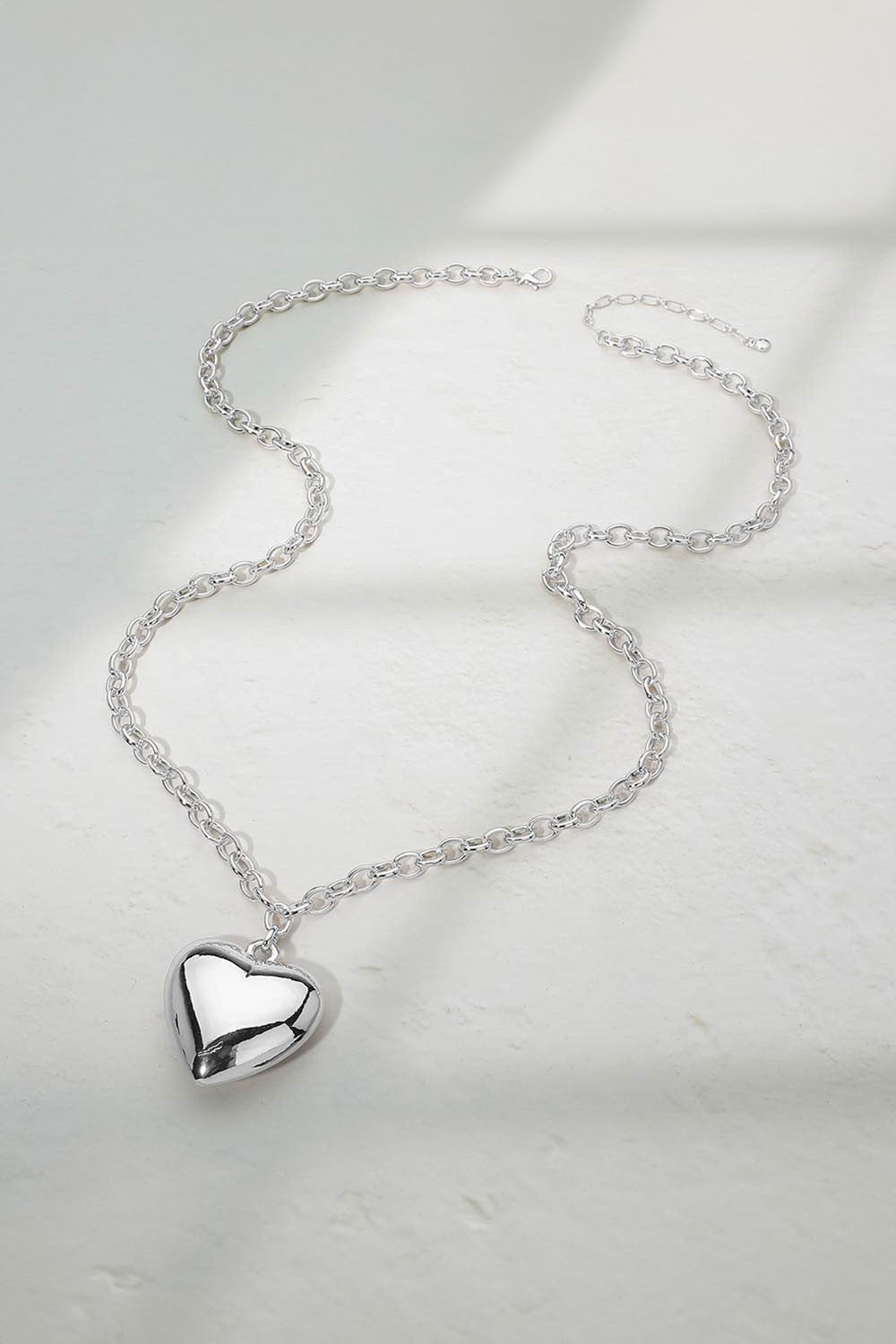 LONG PUFFY SILVER HEART NECKLACE