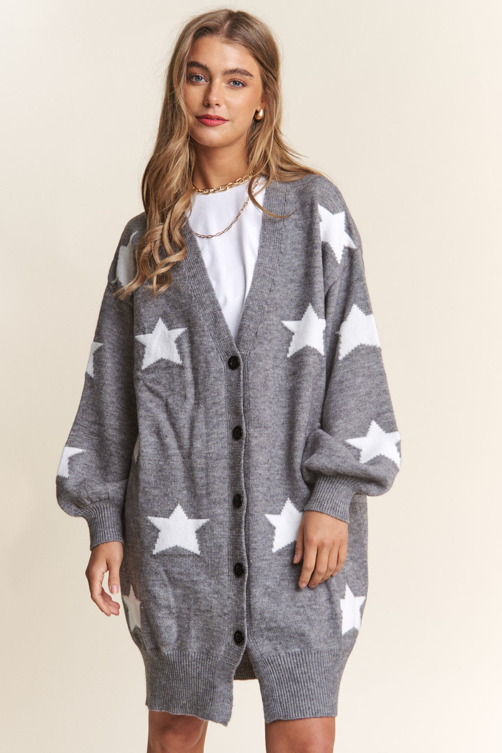 STAR PRINT LONG CARDIGAN