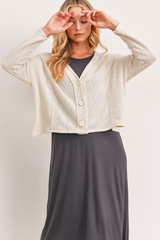 CABLE KNIT CROPPED CARDIGAN